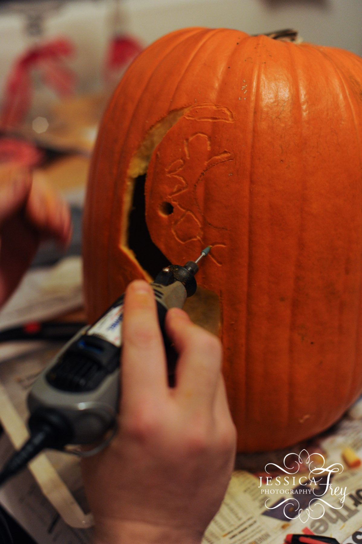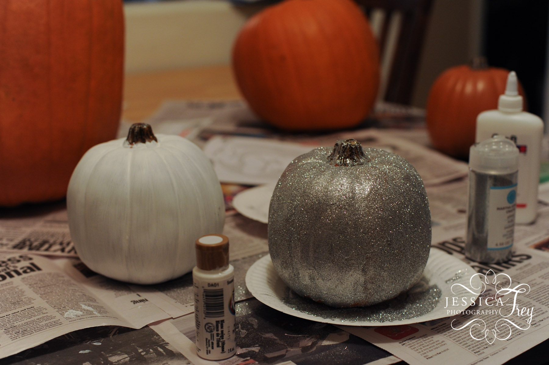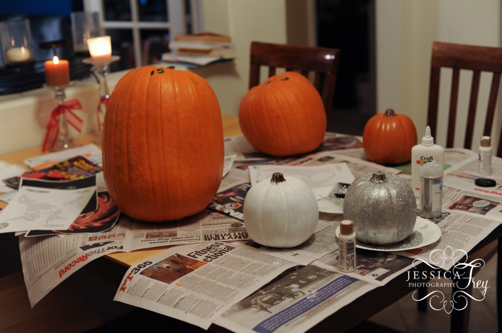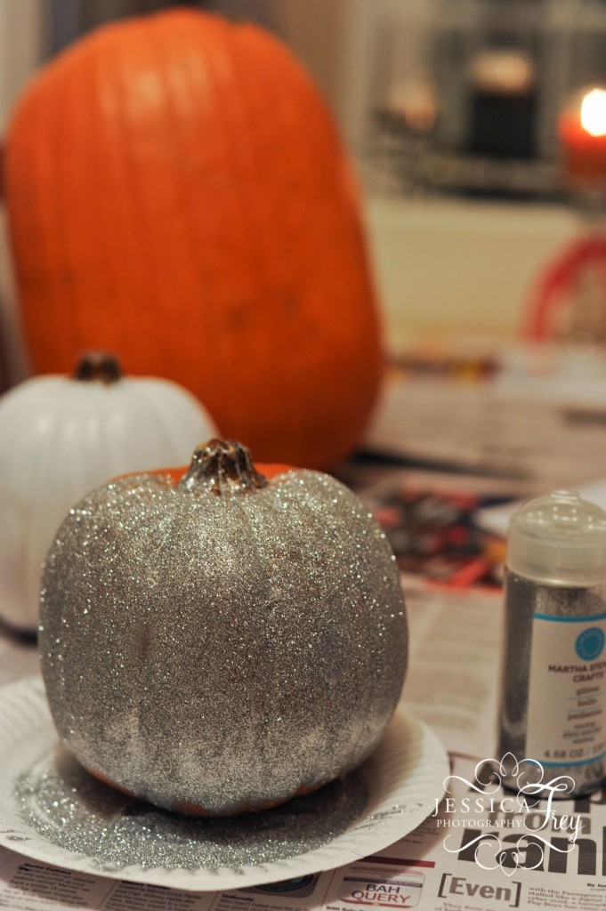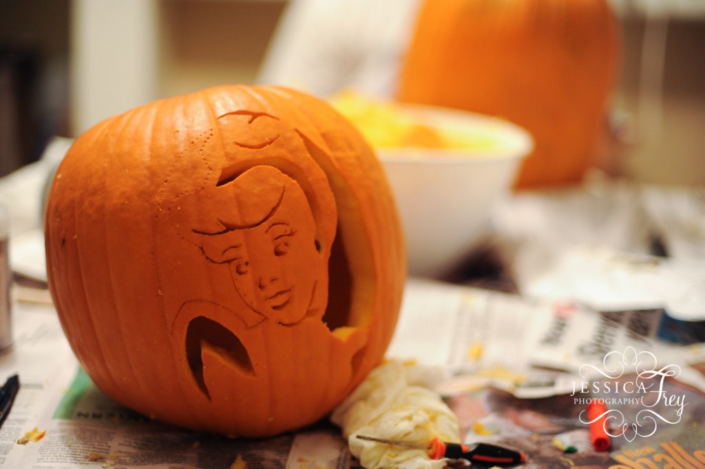 So, I know I said I would show part 2 of Jeff & Gladys’ wedding….but I felt posting a gorgeous wedding on Halloween was a little innappropriate, so instead – here are the pumpkins I created yesterday! I do have a crafty side – and thanks to Pinterest and Michael’s I was able to create glitter pumpkins and my jack-o-lantern with a Cinderella template pumpkin! It’s kind of a big deal in our house – the past few years, Eric and I have gotten creative with our pumpkins using difficult templates and our Dremmels 🙂 If you haven’t carved a pumpkin using a Dremmel, you’re missing out – although remember to have eye wear, you’ll thank me later!!