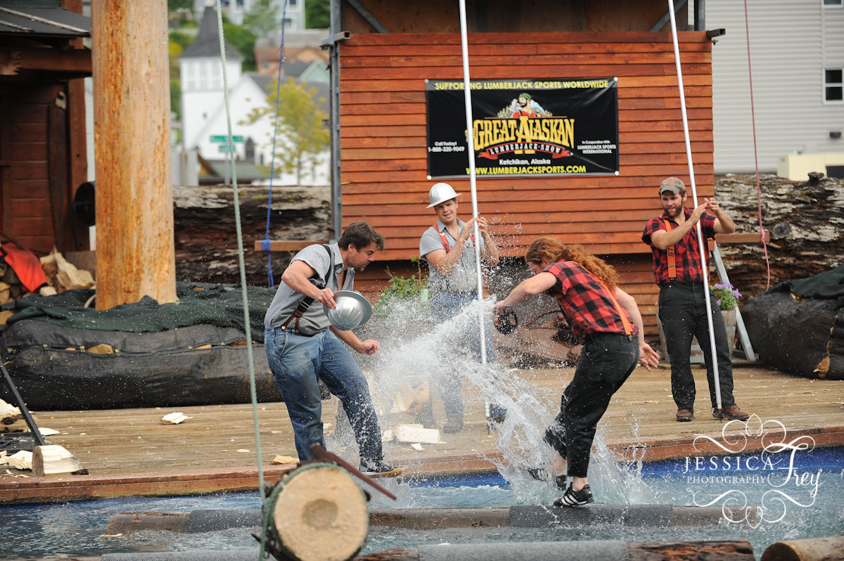 Wedding wednesday is on hold….today, I have some LUMBERJACKS for you! During our port stop in Ketchikan, Alaska my family went to The Great Alaskan Lumberjack Show – a show put on by men who are professional ‘lumberjacks’. I know there’s a sport of ‘lumberjacking’ on a guy channel but I can’t remember what it’s called…anyone know what I’m talking about?! They compete in different sawing, ax throwing, tree climbing, log rolling events and it was quite entertaining. Aparently this location is a great practice area for the up and coming competitors to work on their skills and impress us tourists with their sharp blades and fast chopping….plus, I’m a fan of lumberjack humor and their jokes were highly entertained & right up my ally. Rated on the travel channel as one of the top 10 things to do in Alaska, I guess we can check it off our list!